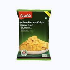 Chhedas Banana Chips Yellow 50g are a crispy, golden-yellow snack made from thinly sliced, raw bananas that are fried to a perfect crunch and lightly salted. They offer a traditional, slightly salty flavor and are described as a good tea-time snack, a convenient on-the-go treat, or a healthier alternative to potato chips.
