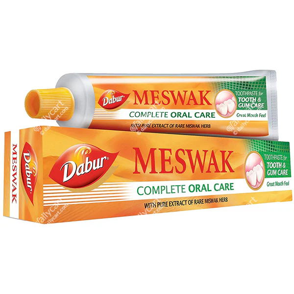 Dabur Meswak is fluoride-free toothpaste which makes it completely safe for your family’s use It has a pure extract of rare Miswak herb (Salvadora Persica) which is also known as the Toothbrush Tree. It is known for providing oral care to humanity for ages.