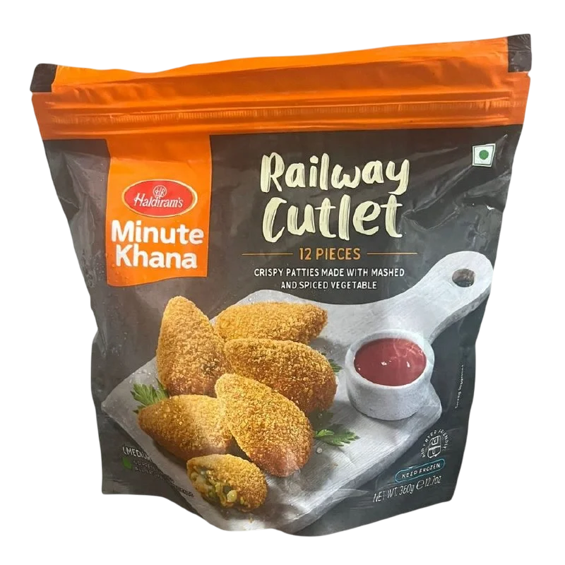 Enjoy the nostalgic taste of classic Indian Railway Cutlets with Haldiram’s! This 360g frozen pack contains delicious, mildly spiced mixed vegetable patties, ready to be shallow fried, deep fried, or air fried to a golden crisp. A perfect savory snack, appetiser, or tea-time treat.