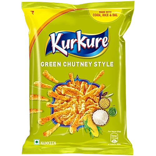 These crunchy snacks are flavored with a spicy green chutney flavor in a North Indian Rajasthani style. About the brand-Kurkure is a crunchy, new-age Pack namkeen snack brand which symbolizes light-hearted fun. Kurkure Green Chutney is a crunchy snack food flavored with a spicy green chutney flavor in a North Indian Rajasthani style. It’s a popular snack in India and is often enjoyed with tea or as a quick and tasty snack on-the-go. It’s a great option for those looking for a vegetarian or vegan snack.
