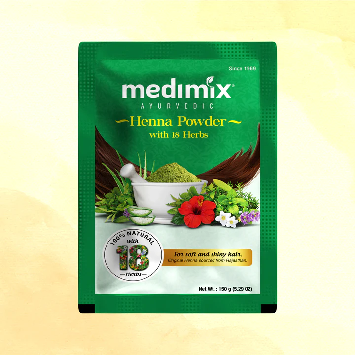 Medimix Henna Hair Powder, crafted with natures finest 18 herbs, is a 100% natural hair colour. With intense conditioning, it makes your hair look soft and shiny. Colours your premature grey hair into a vibrant natural colour that lasts long.