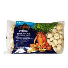 TRS Phool Makhana 50G is a 50-gram package of popped lotus seeds, also known as fox nuts, which are a light, crunchy, and nutritious snack. It is a versatile ingredient used in both sweet and savory Indian dishes, such as curries and kheer, or eaten on its own as a healthy snack alternative. The raw product is low in calories and fat but rich in nutrients like protein, calcium, and magnesium.